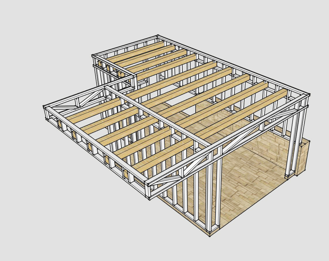 The design features an external pergola, adding to its visual appeal and creating a welcoming entrance. The building's sturdy construction is made up of 15 cm x 15 cm square beams and 17 mm OSB plates for the internal walls, with a rockwool thermal blanket applied between the columns for excellent insulation. The roof is constructed using the same method as the walls and sealed with bituminous sheets for protection against the elements.
